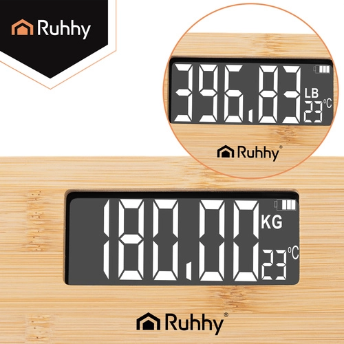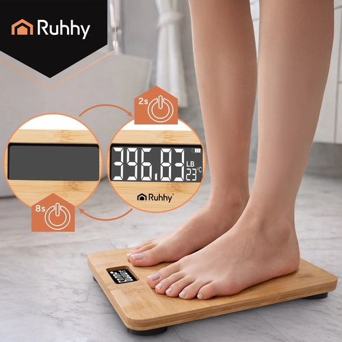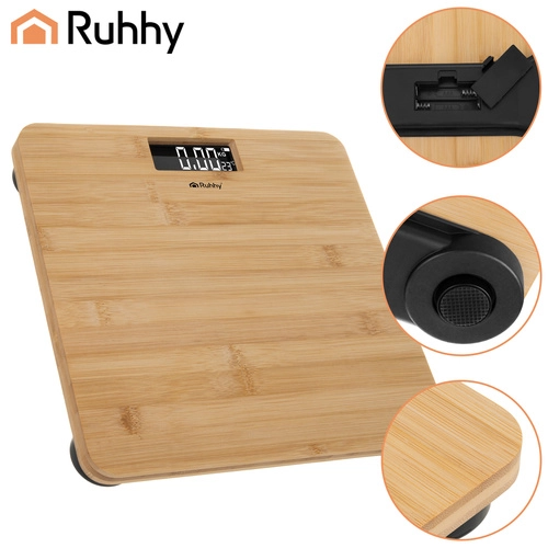 Тази елегантна бамбукова везна съчетава естествен външен вид с модерни технологии. Ясният LCD дисплей осигурява лесно отчитане на стойностите, докато автоматичното изключване пести енергия. Благодарение на противоплъзгащите крачета използването е безопасно дори върху гладки подове.