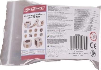 Подкрепете детската мотивация по игрив начин. Тази ролка предлага 500 кръгли стикера с весели животински лица (различни степени на усмивка и изненада), които отлично служат като бърза награда за изпълнени задачи, усилие и добро поведение. Стикерите са от хартия с качествено лепило, лесни за поставяне и премахване, подходящи за детски градини, училища, занимални и домашна употреба.
