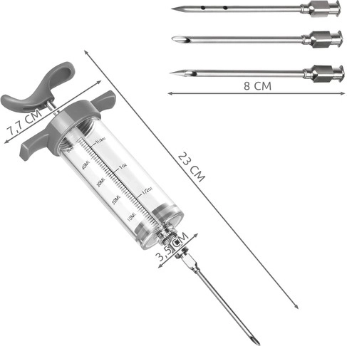 Тази кухненска инжекторна спринцовка е идеална за домашно пушене, печене и грил. Позволява инжектиране на саламура, бульони и маринати директно във влакната на месото, което значително съкращава времето за мариноване и осигурява равномерно осоляване и овкусяване. Прозрачното тяло със скали в ml улеснява прецизното дозиране.