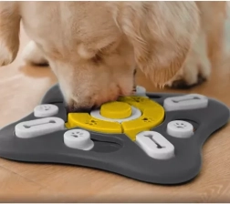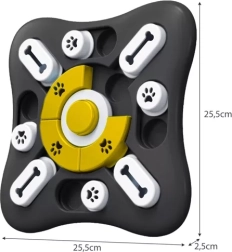 - Много отделения - Кучето открива лакомства във всяко отделение, докато централните пъзели могат да се въртят на 360 градуса и привличат с издаваните звуци.