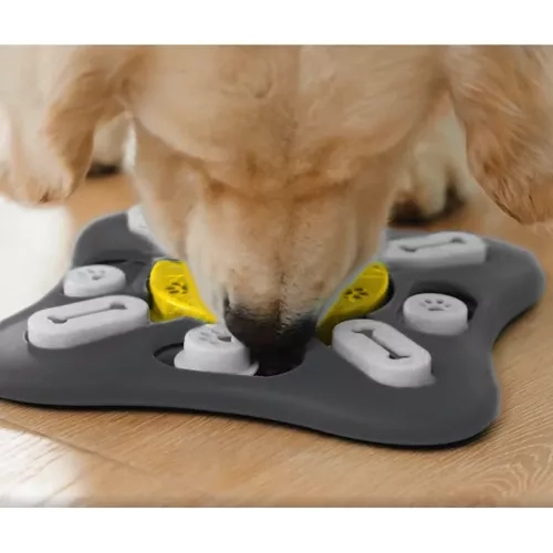 Играчката съдържа подвижни елементи и скрити отделения за лакомства, които поддържат кучето активно и ментално стимулирано.