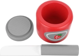 Управлението е лесно и забавно – въртящият се „терморегулатор“ и лостчето стартират запичането, а след малко тостовете сами изскачат. Комплектът подпомага развитието на фантазията, координацията око–ръка и мануалните умения, като е чудесна тренировка преди истинско рязане и приготвяне на храна.