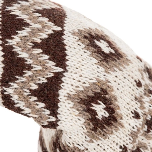 Гномът с плетена шарена шапка и изкуствена козина предлага уютна рустикална визия, идеална за празничен декор.