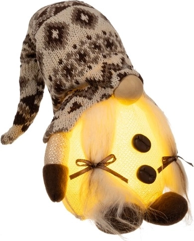 Благодарение на светещото коремче гномът е енергийно ефективен и изглежда прекрасно и на тъмно. Осветлението, захранвано с батерии, гарантира безопасност и лесна употреба. Също така е чудесна идея за коледен подарък, който озарява всяка стая и ѝ придава неповторима празнична атмосфера.