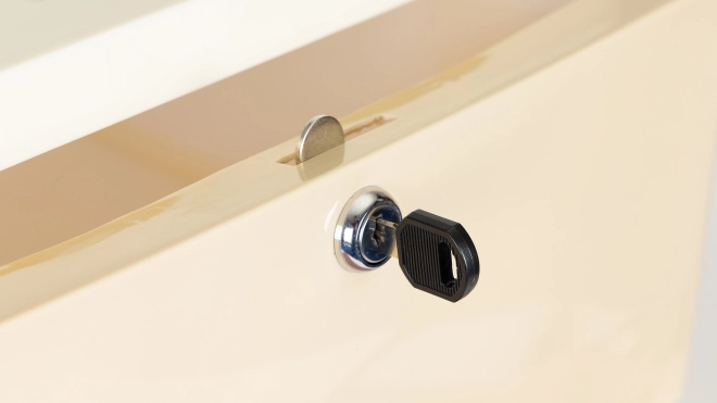 Всяко чекмедже е оборудвано с практична дръжка за удобно изтегляне и предпазни стопери, които предотвратяват изпадането. Колелцата на краката позволяват бързо преместване там, където е необходимо, а горното заключващо се чекмедже е подходящо за вещи, които искате да държите под контрол.