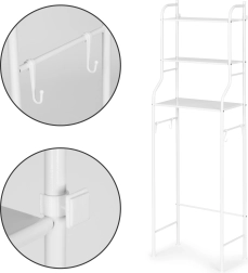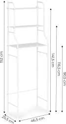 Този рафт за баня е идеално решение за тези, които търсят функционалност и елегантност в едно. Неговата алуминиева, стабилна конструкция осигурява не само издръжливост, но и модерен вид, който перфектно пасва на всяко оформление на банята. Благодарение на универсалността си рафтът може да се използва и над пералня, което позволява оптимално използване на наличното пространство в банята. Освен това е оборудван с 2 рафта с размери 16,5 x 43 см и 1 рафт с размери 24,5 x 43 см, които позволяват съхранение на предмети с различни размери и форми.