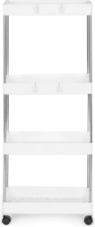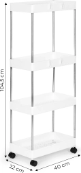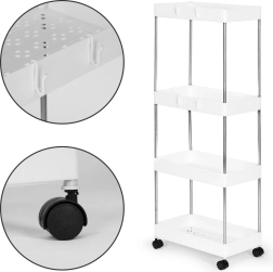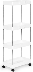 Пластмасовата стойка за баня или кухня е идеална за всеки, който търси функционалност и лекота в едно. Четирите рафта осигуряват много място за съхранение за различни нужди, от козметика до хавлии и хигиенни продукти.