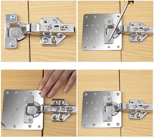 - Комплект за различни нужди: Четирите поправъчни плочи позволяват да ремонтирате няколко панти наведнъж.