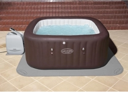 В комплекта има и самостоятелна подложка за помпа, която осигурява стабилно и безопасно поставяне на отоплителното/филтриращото устройство. Ако вашата хидромасажна вана е по-голяма от 196 × 196 cm, просто съединете повече комплекти, за да получите необходимата защитна площ.
