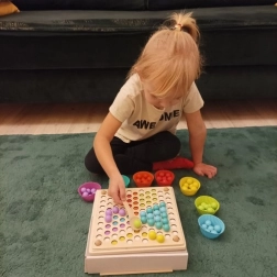Дървеният пъзел с мъниста е повече от играчка. Осигурява обучение чрез забавление, помага на децата да развиват мануални умения и координация. Благодарение на цветните мъниста и разнообразните модели стимулира логическото мислене и креативността.
