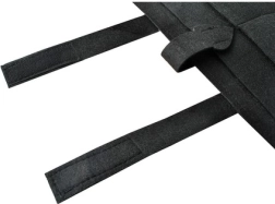 Органайзерът е изработен от филцов материал, който гарантира лекота и лесна употреба. Инсталацията е бърза и интуитивна: горната част се закрепва към долната част на подглавника с велкро, а долната се фиксира към седалката с метални куки.