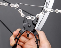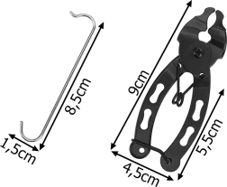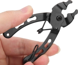 Тези универсални клещи са проектирани за лесно отваряне и затваряне на бързосваляеми звена на велосипедни вериги. Благодарение на прецизната механика и пружината ще извършвате поддръжката на веригата бързо, безопасно и без излишни усилия. В комплекта има практична кука за веригата, която поддържа веригата опъната при почистване, смазване или подмяна.