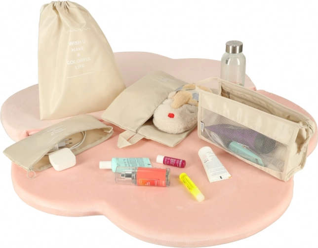 В комплектa е включена отделна торбичка за обувки със стягане и по-малки джобове за козметика и дребни предмети, за да държите всичко безопасно отделено.
