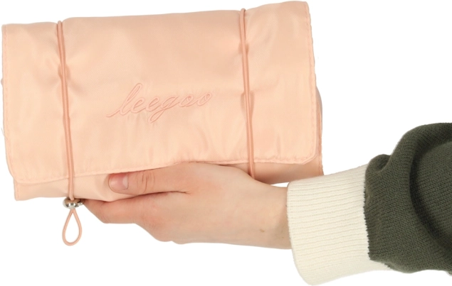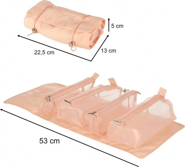 Козметичната чанта разполага с практичен дизайн, който позволява навиване до компактен размер. Идеална е за пътуване, където пести място в багажа.