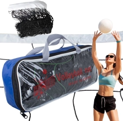 Универсална волейболна мрежа за външна и зала употреба с размери 9,5 × 1 m и практично стоманено опъващо въже, покрито с пластмаса. Леката и компактна конструкция от издръжлива пластмаса позволява бързо закрепване към колове, дървета или други стабилни елементи. В комплекта има транспортна чанта за лесно пренасяне и съхранение.