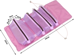 Просторните, прозрачни джобове държат вашия грим и аксесоари подредени и защитени. Всеки джоб може да се изважда и пренарежда благодарение на велкро лентите.