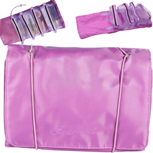 Идеален за козметика, бижута, хигиенни принадлежности и дребни аксесоари. Благодарение на висящата кукичка лесно се поставя в банята или по време на път. Лекият текстилен материал и компактните размери го правят идеален спътник за чанта, раница и куфар.