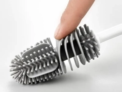 Благодарение на гъвкавата си конструкция нашата четка се адаптира идеално към формата на всяка чаша и бутилка и осигурява цялостно и ефективно почистване дори на труднодостъпните места.
