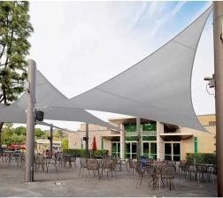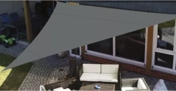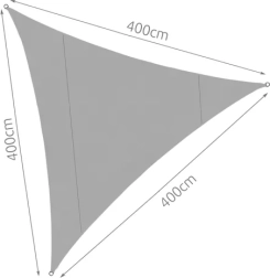 Триъгълната форма 4 × 4 × 4 m създава приятна сянка над къта за сядане на терасата или в градината. Материалът намалява прегряването и позволява циркулация на въздуха.