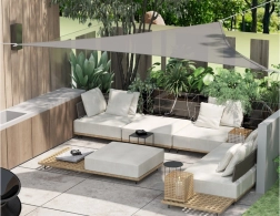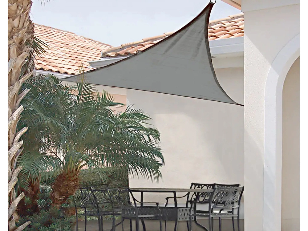 Създайте приятна сенчеста зона за релакс и срещи. Триъгълната форма в модерен сив цвят подхожда на повечето екстериори, а водоотблъскващото покритие и UV защитата гарантират комфорт и в топли дни. Подсилените шевове, здравите D-образни халки и устойчивите ъгли осигуряват дълъг живот и стабилност при правилно опъване.