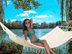Дървените разпънки поддържат хамака разтворен, здравите въжета осигуряват стабилност, а в комплекта са включени и монтажни шнурове за бързо окачване.