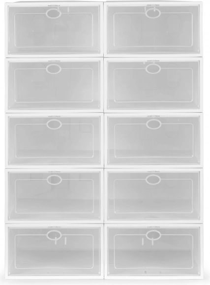 Прозрачните вратички с дръжка улесняват избора на чифт без отваряне и защитават обувките от прах и влага. Издръжливата пластмаса се поддържа лесно и е идеална за антре, гардеробни и детски стаи.