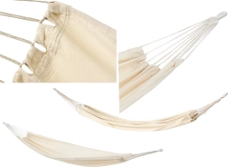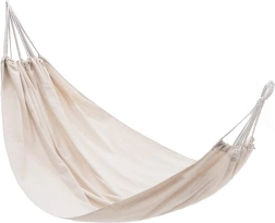 Този просторен хамак ви осигурява чудесно място за релакс след работа и за уикенд почивка. Дишащата платнена материя приятно обгръща тялото, като същевременно е достатъчно здрава и стабилна. Благодарение на компактния калъф и ниското тегло, лесно ще вземете хамака на вилата, до езерото или в парка.