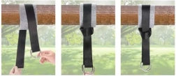 Комплектът се инсталира за минути – достатъчно е да увиете коланите/въжени обвивки и да ги фиксирате с карабините. Без инструменти, без повреда на повърхности.