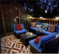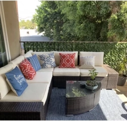 Комбинацията от полиестер и PP осигурява дълъг живот и устойчивост на атмосферни влияния на балкони, тераси и в градини.