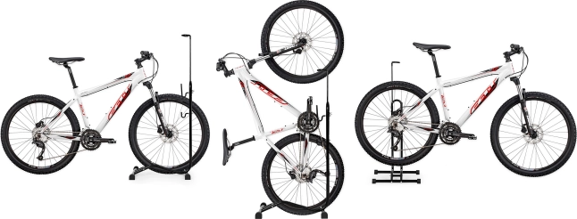 Специално регулируемите държачи на стойката адаптират размерите ѝ към градски, планински и шосейни велосипеди. Държачите са покрити с мек материал, който предпазва рамката от надраскване.