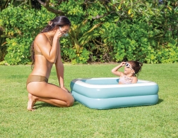 Зарадвайте децата с собствен басейн, който ще сглобите за няколко минути. Квадратната конструкция с по-висок ръб е стабилна и удобна, а надуваемото дъно омекотява ударите и повишава комфорта при седене и игра. Благодарение на компактния размер басейнът е идеален за прохождащи и деца в предучилищна възраст.