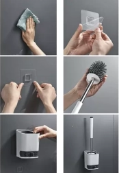 Силиконова WC четка за стена с държач, черна 35 см