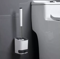 Силиконова WC четка с окачен на стена държач RUHHY, бяла