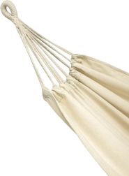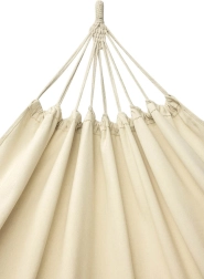 Здрава конструкция: Благодарение на висококачествения памук и полиестер хамакът е изключително издръжлив и осигурява товароносимост до 120 кг. След сгъване заема малко място и лесно се съхранява с включения калъф.