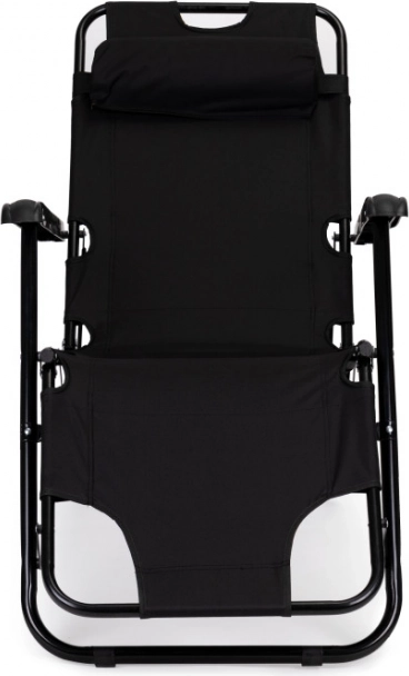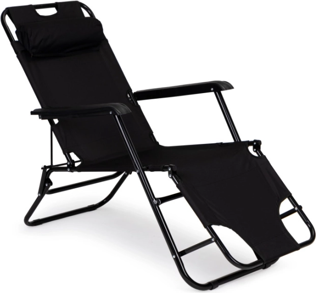 Възглавничка за глава – Добавената възглавничка подобрява комфорта по време на отдих. Тя осигурява отлична опора за врата и главата. Шезлонгът е изработен от здрава материя, която се адаптира към тялото ви и предоставя още по-приятна външна релаксация. Благодарение на сгъваемия дизайн шезлонгът е идеален за почивка и лесен за съхранение след летния сезон, спестявайки ценно пространство.