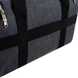 Чантата е проектирана да отговаря на изискванията на авиолиниите за ръчен багаж. Основното отделение с по-твърдо дъно защитава съдържанието и улеснява опаковането, докато предният джоб с цип и два странични мрежести джоба държат дребните вещи винаги под ръка. Издръжливият материал полиестер 600D е лесен за почистване и водоустойчив, така че вещите ви ще останат в безопасност.