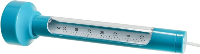 Термометърът е изработен от издръжлива пластмаса и разполага с ясна скала в Целзий и Фаренхайт. С приложената връв лесно го фиксирате към стълба, стъпала или ръба на басейна, за да не отплава.