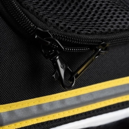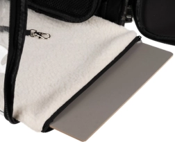 Подвижната мека вложка с подсилено дъно и вътрешният предпазен карабинер осигуряват комфорт и защита на животното по време на път.