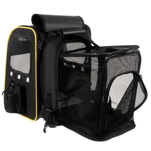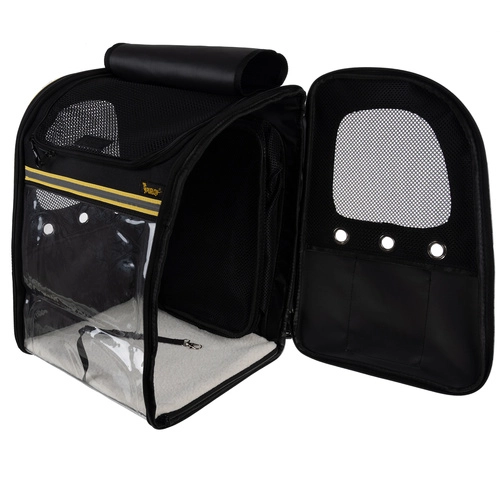 Прозрачната предна щора с вентилационни отвори и мрежестите панели отстрани и отгоре осигуряват на вашия любимец гледка и постоянен приток на свеж въздух.