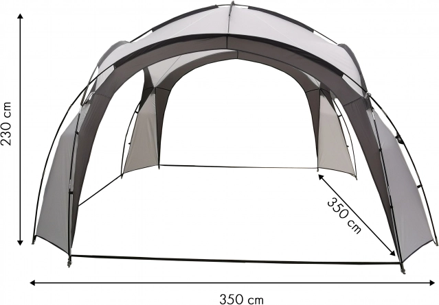 Създайте надеждна площадка за семейни тържества, барбекюта и сезонни събития. Този елегантен павилион в сив цвят съчетава лекота, стабилност и устойчивост на атмосферни влияния. Отворената конструкция осигурява отлично движение на въздуха, а профилираните арки ефективно отвеждат дъждовната вода встрани.