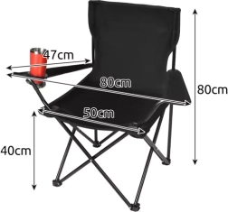 Насладете се на удобство при риболов, къмпинг или на фестивал. Този сгъваем рибарски стол TRIZAND в черен цвят съчетава комфорт с мобилност: просторното седалище от издръжлива тъкан Oxford 600D, подлакътниците и практичният държач за напитка осигуряват приятно седене и при по-дълга употреба.