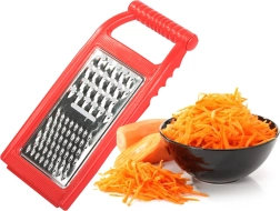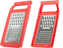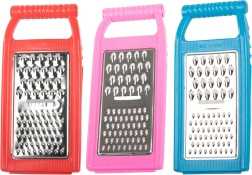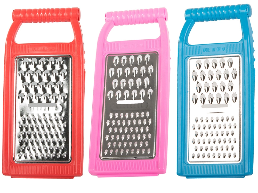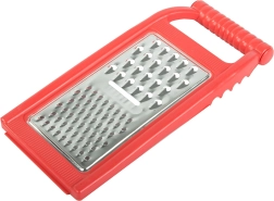 В комплекта има три типа остриета: за рязане, за едро и за ситно стържене. Благодарение на куките за опора върху купа или тенджера имате стабилност и свободни ръце по време на работа. Рендето е идеално за зеленчуци, плодове и сирене, а след употреба се изплаква лесно.