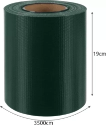 Практична и елегантна PVC оградна лента с височина 19 cm и дължина 35 m, идеална за покриване на панелни огради, парапети на балкони и тераси, както и за прегради при навеси. Материалът с висока граматура 450 g/m² е устойчив на UV лъчи, атмосферни влияния, влага и ниски температури, така че цветът не избледнява, а лентата не се напуква.