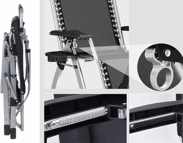 Шезлонгът е оборудван със здрава стоманена рамка и дишаща седалка, която осигурява комфорт дори в горещи дни. Максималното натоварване е 140 кг.