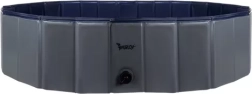 Практичният отточен вентил позволява бързо източване на водата без преобръщане на басейна. Издръжливото PVC с подсилване от MDF е готово за външна употреба и ежедневна натовареност. Размерът 120 × 30 cm осигурява достатъчно пространство за малки и средни породи.