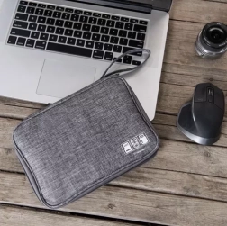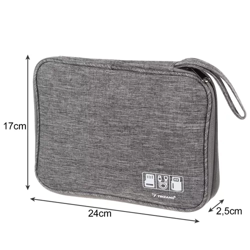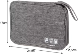 Край на заплетените кабели и хаотичното дъно на раницата. Този практичен органайзер комбинира лек и издръжлив полиестер с функционално разпределение, така че да съхранявате USB кабели, зарядни, слушалки и преходници безопасно и подредено. Компактните размери 24 × 17 × 2,5 cm се побират отлично в чанта или ръчен багаж.