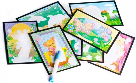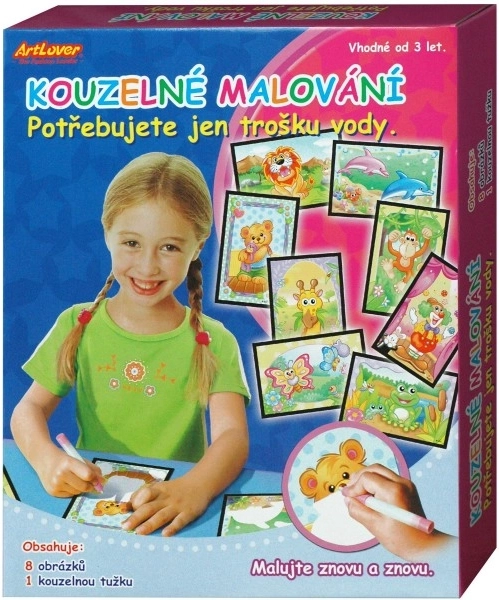 Открийте креативно забавление без бъркотия! Комплектът за вълшебно рисуване с вода позволява на децата да рисуват отново и отново – нужна е само вода. Картинките оживяват с цветове при навлажняване, а след изсъхване се връщат в първоначалното си състояние. Лесно, безопасно и многократно използваемо творчество за малки артисти над 3 години.