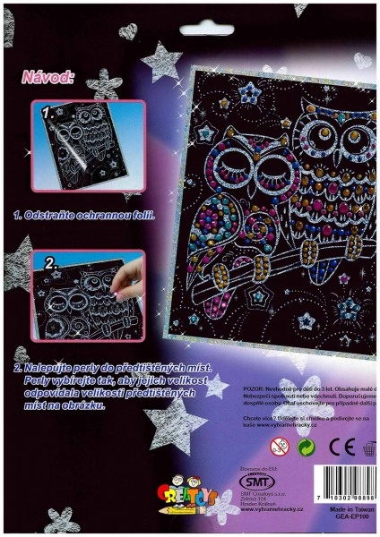 Перлената картина Сови представлява чудесна креативна дейност за деца и възрастни. Отстранете защитното фолио и се насладете на часове забавление, като поставяте перличките в предварително отбелязаните места.