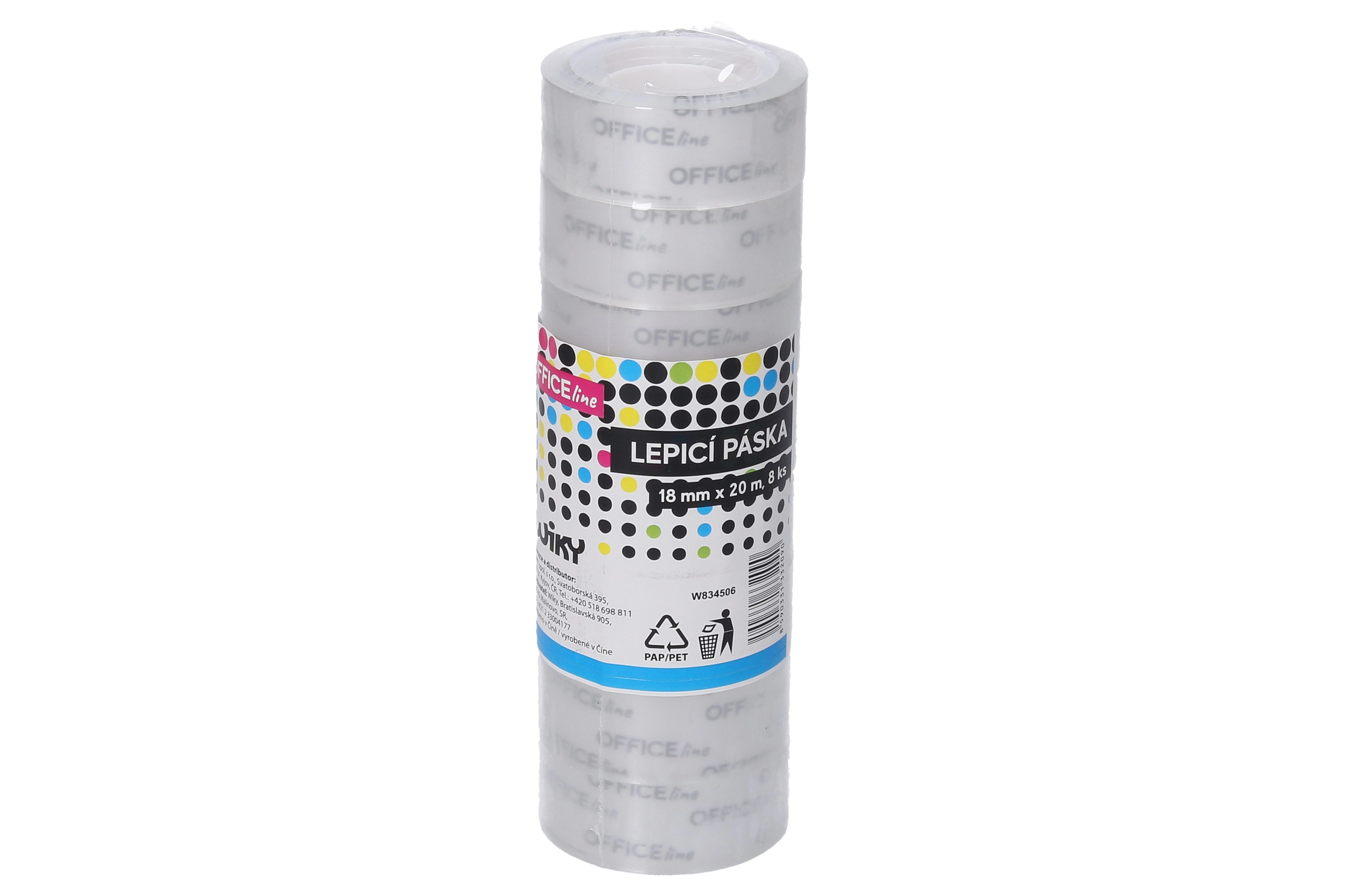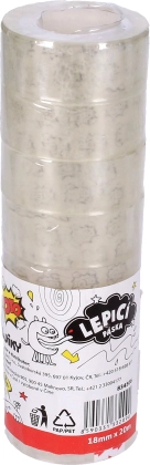 Прозрачна лепяща лента с ширина 18 мм и дължина 20 м, идеална за ежедневна офисна и домашна употреба. Опаковката съдържа 8 броя от тази практична лента.