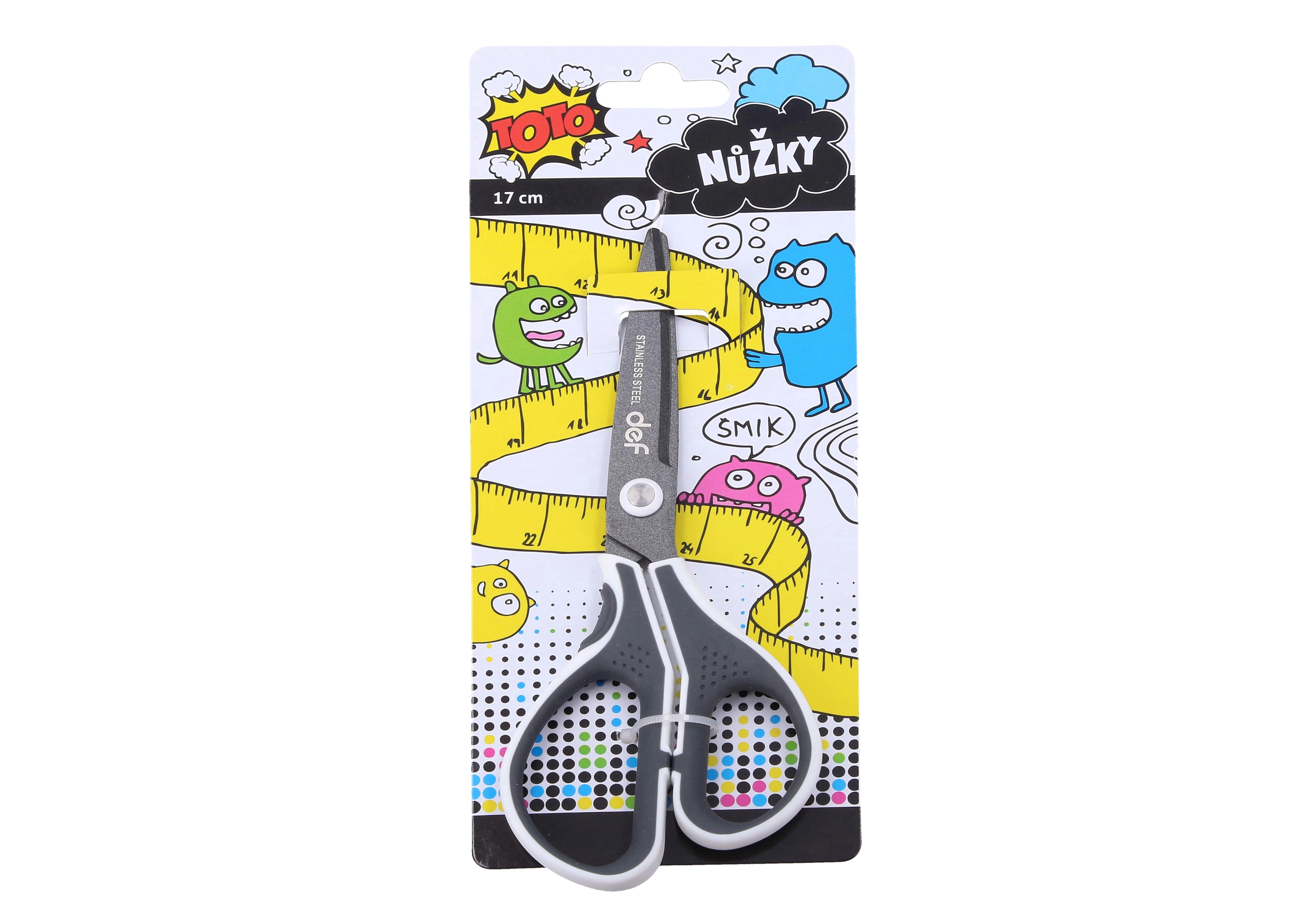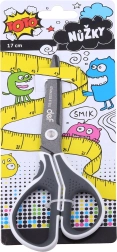 Практични цветни ножици с дължина 17,5 см с ергономично оформена мека дръжка и гумен противохлъзгащ се захват. Подходящи за училище, домакинство и офис. Предлагат се в 3 цветови варианта.